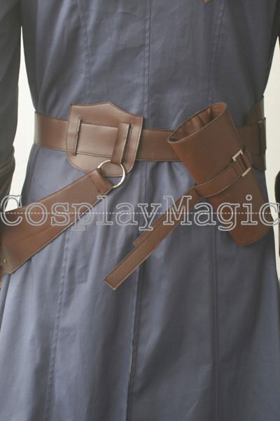 - Brown faux leather belt with gun holster