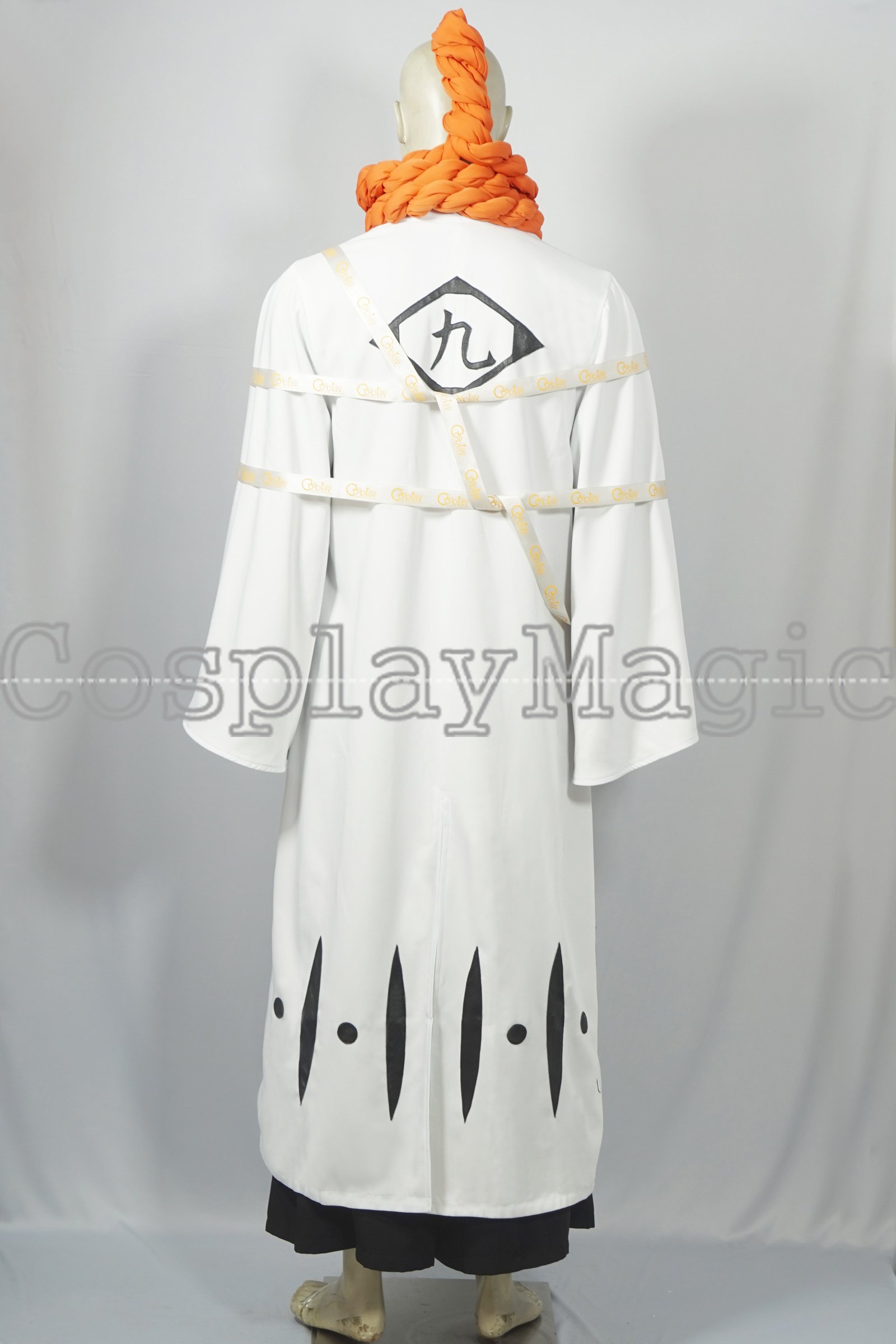 - White captain’s haori with 9th Division emblem on the back and alternating pattern along the bottom