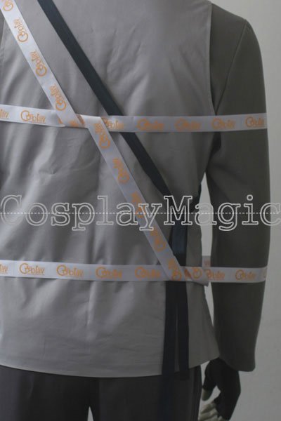 - Gray shirt underneath with light-gray vest