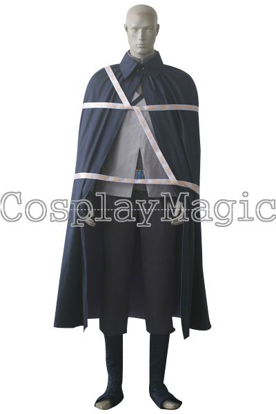 - Dark blue cloak with purple lining, front closure