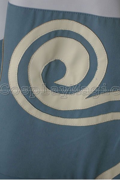 - White yukata with blue swirl pattern on the bottom and at the end of the sleeves