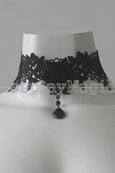 Gothic Lolita Black Rose lace Choker Cuff with Ring Earrings Set