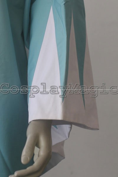 - Pale blue kimono with white triangle pattern along the cuffs