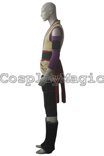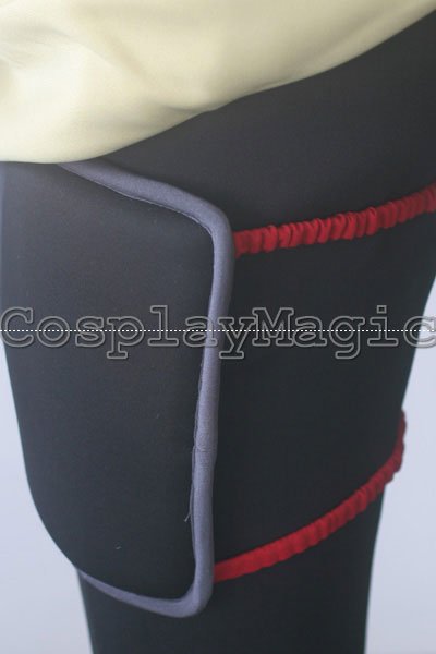 - Red sash and black sash around his waist