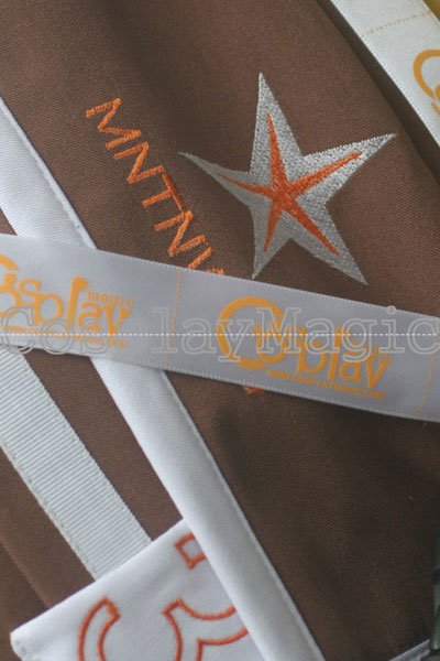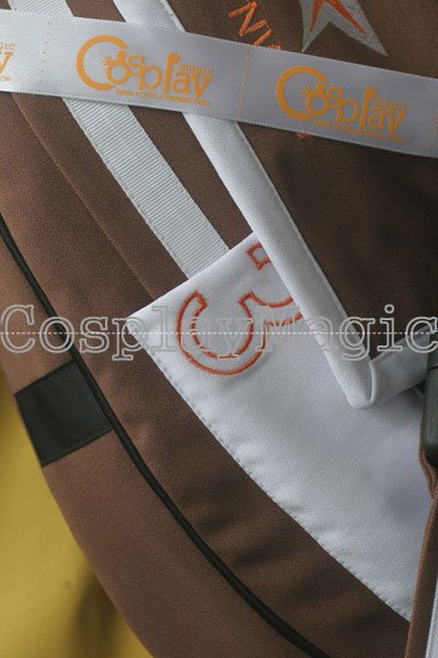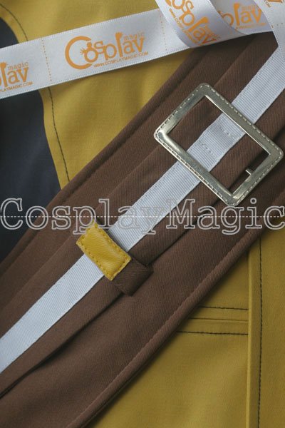 - Brown trousers with a stripe on the right leg, forming a small union jack design