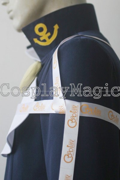- Blue high-collared jacket