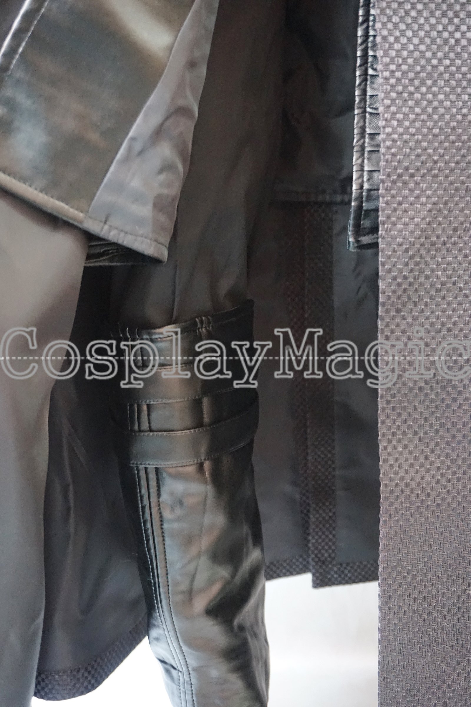 - Black faux leather leg protectors