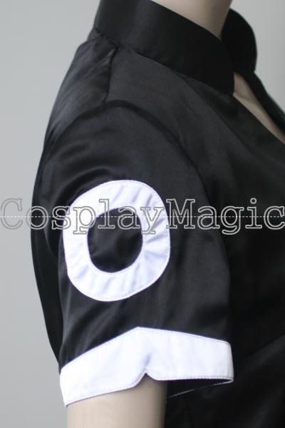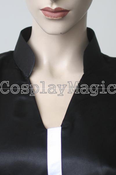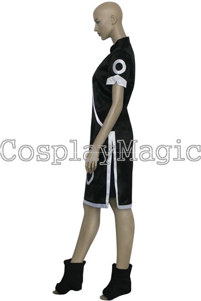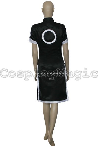 - Black qipao dress with white circular designs