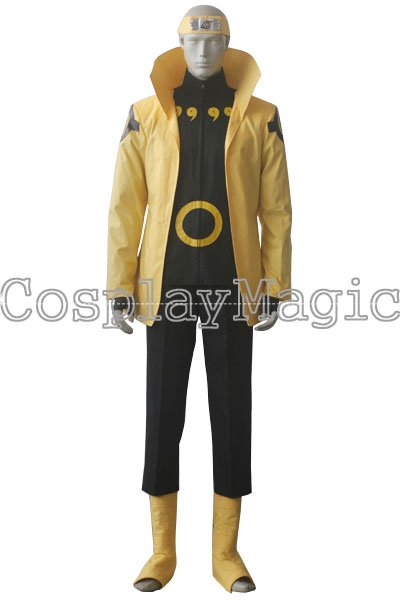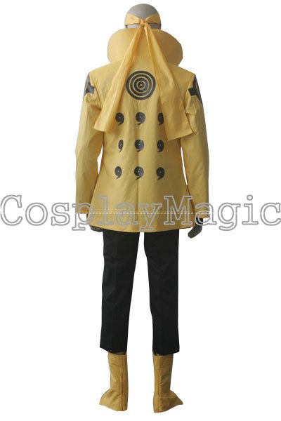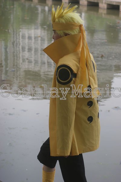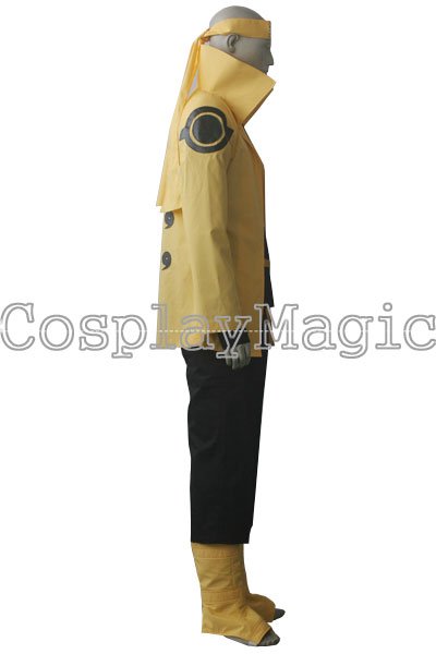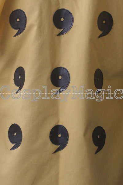 - High-collared yellow coat with Rinnegan and nine magatama on the back