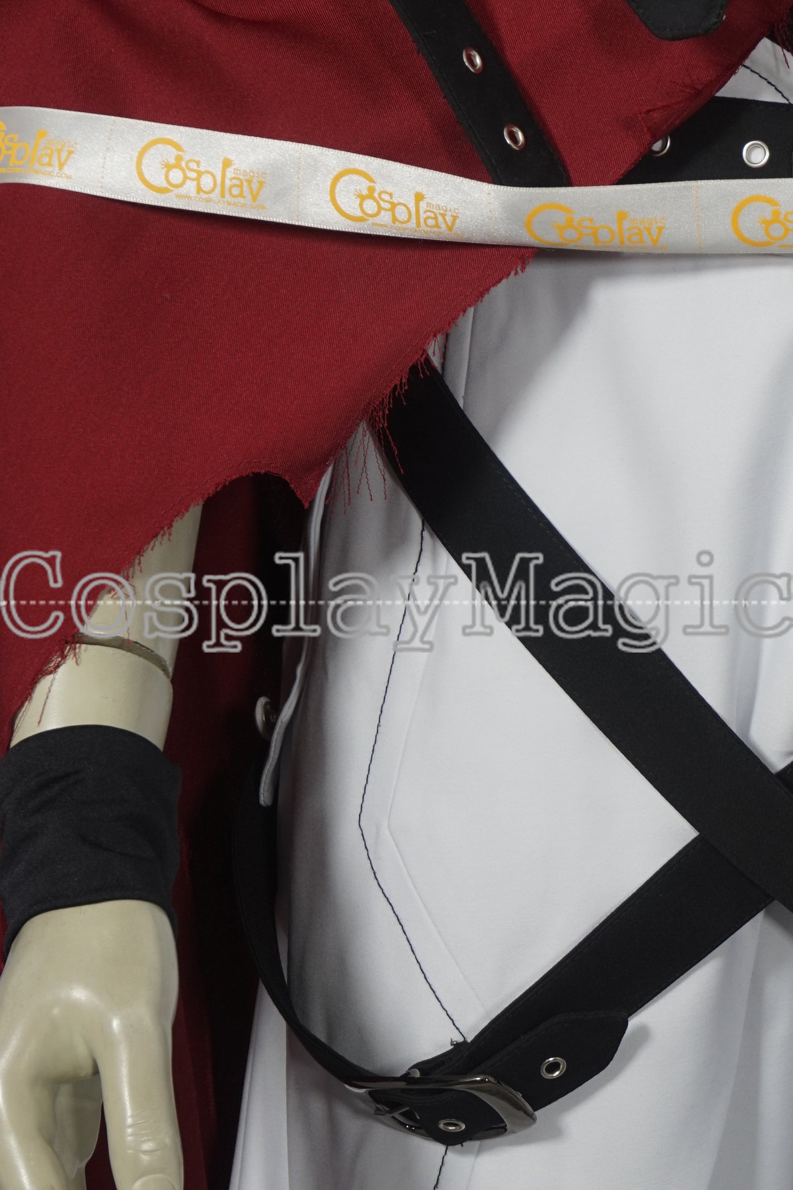 The package include: black vest, red cloak, white pants, white apron, black belt, wrist band, knee protector, leg cover.  You can also order his wig at $10 off.