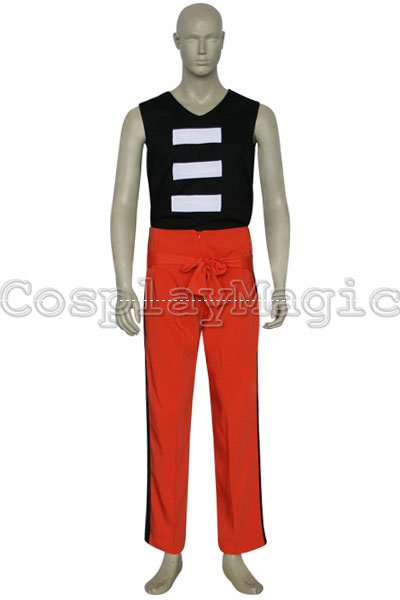 - Orange pants with black line running down each outside leg