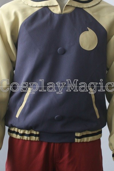- Yellow and black jacket with buttons going down the front