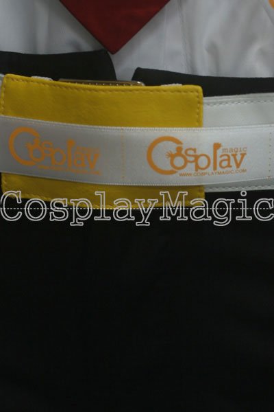 - White shirt with contrast trim underneath, red tie
