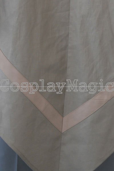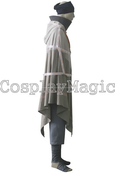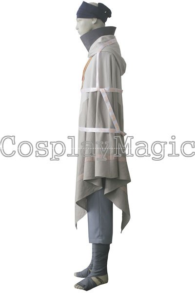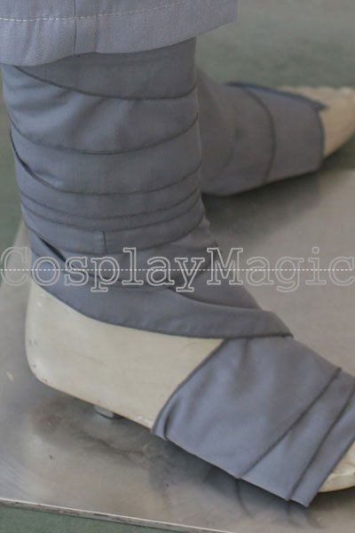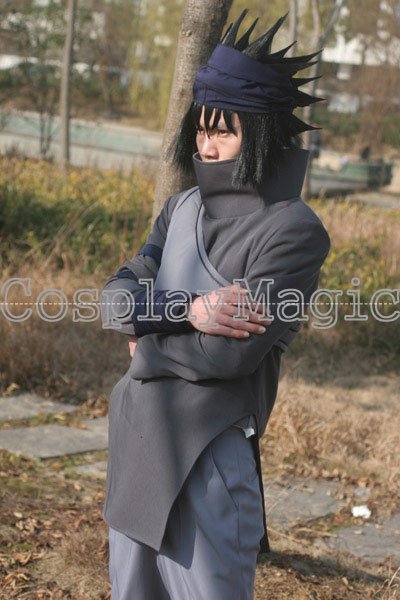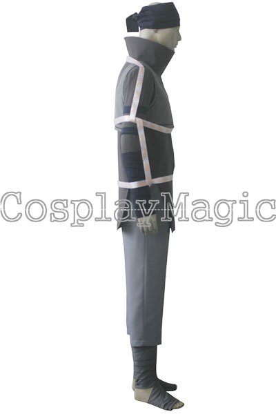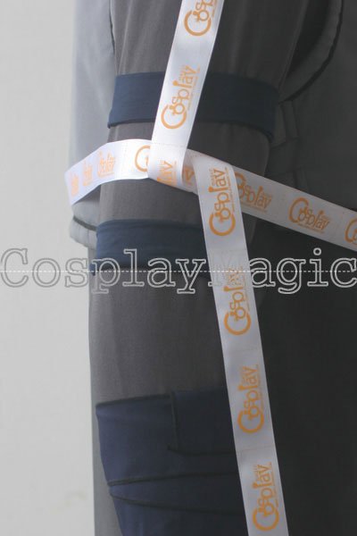 - Dark gray high-collared shirt with navy blue bandages