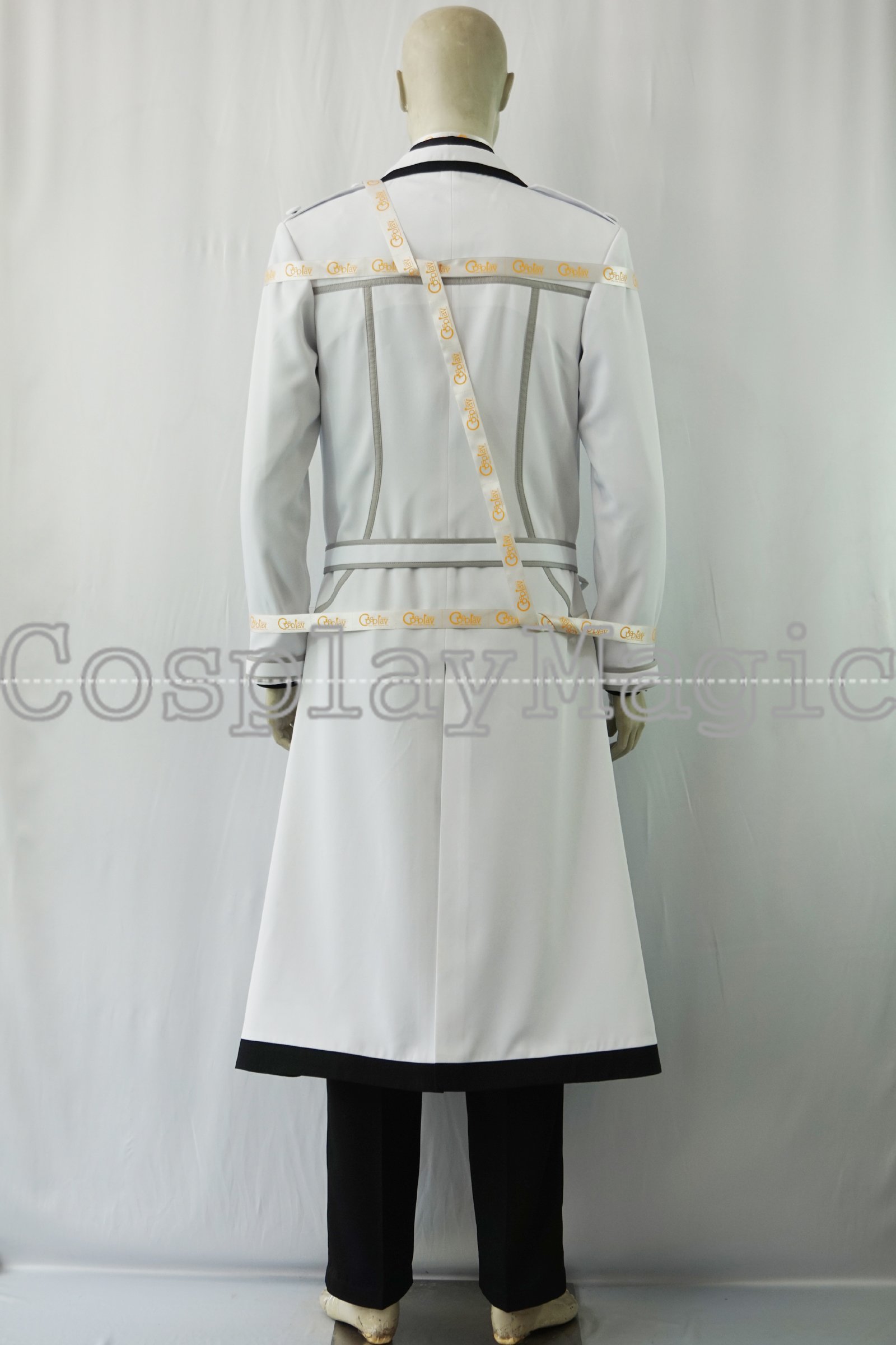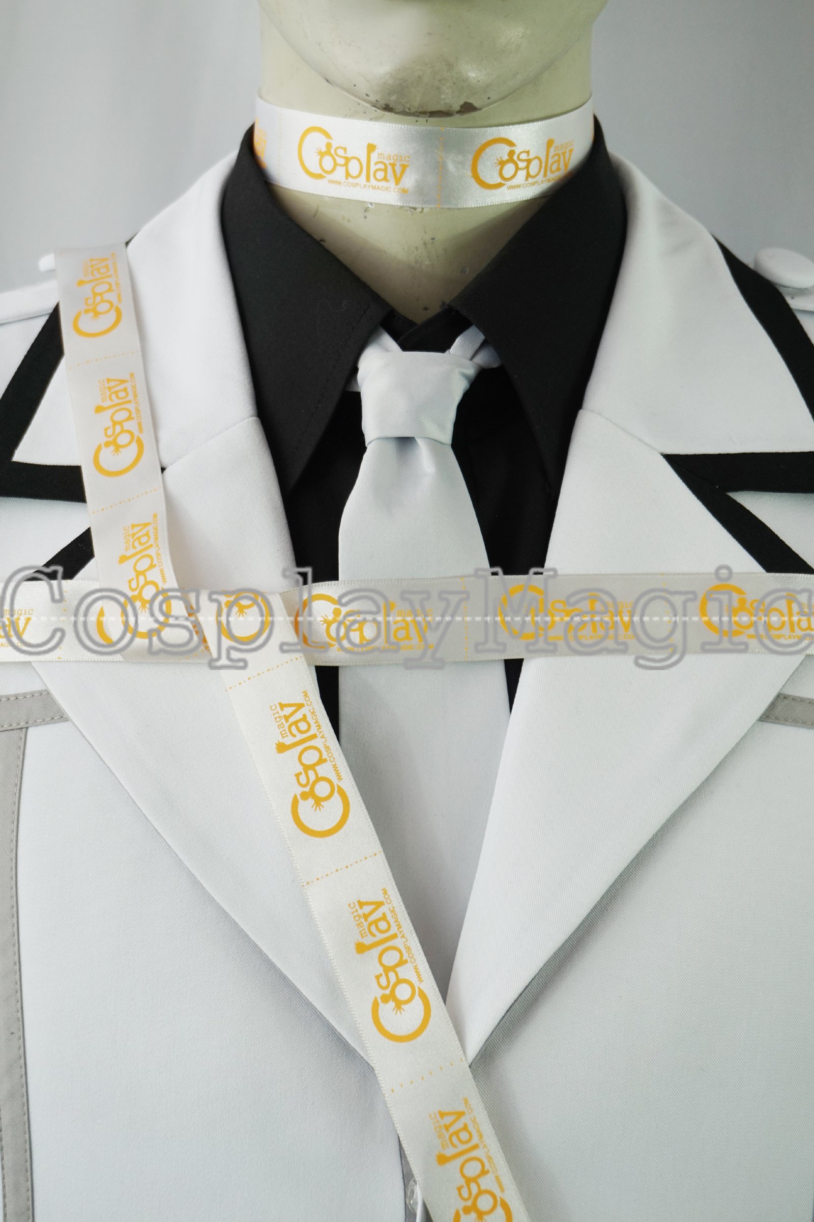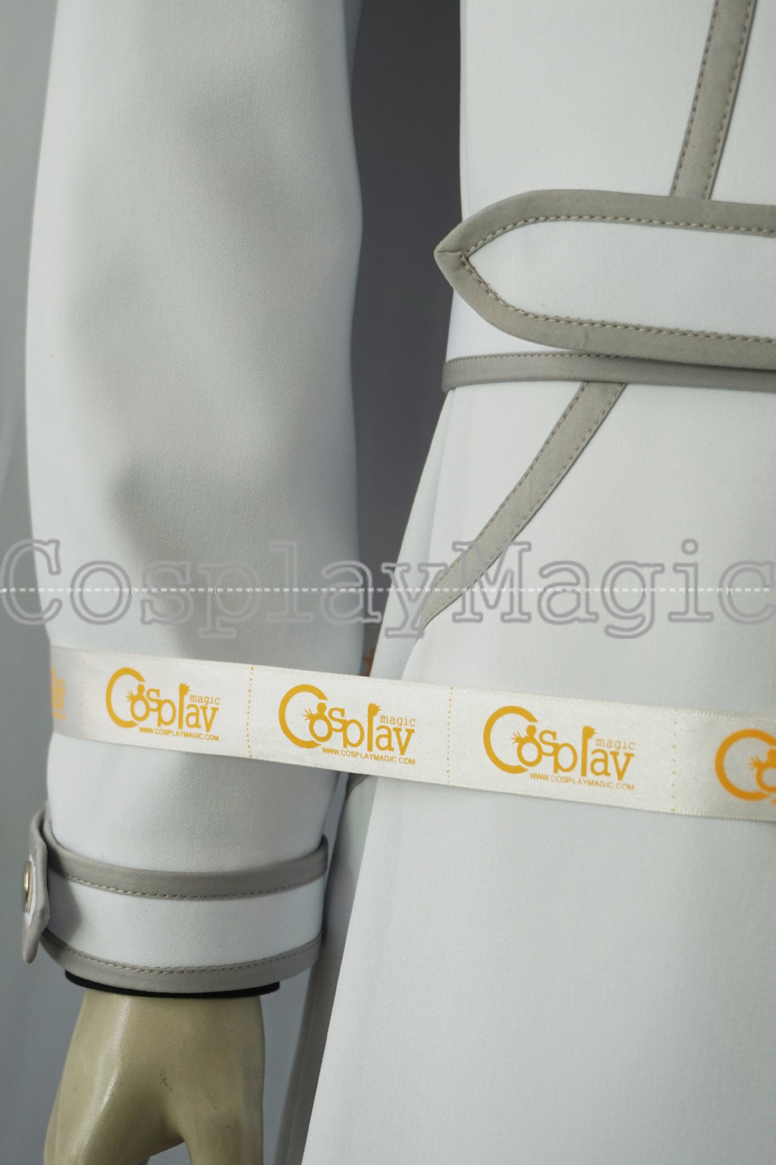 - White jacket with gray trims