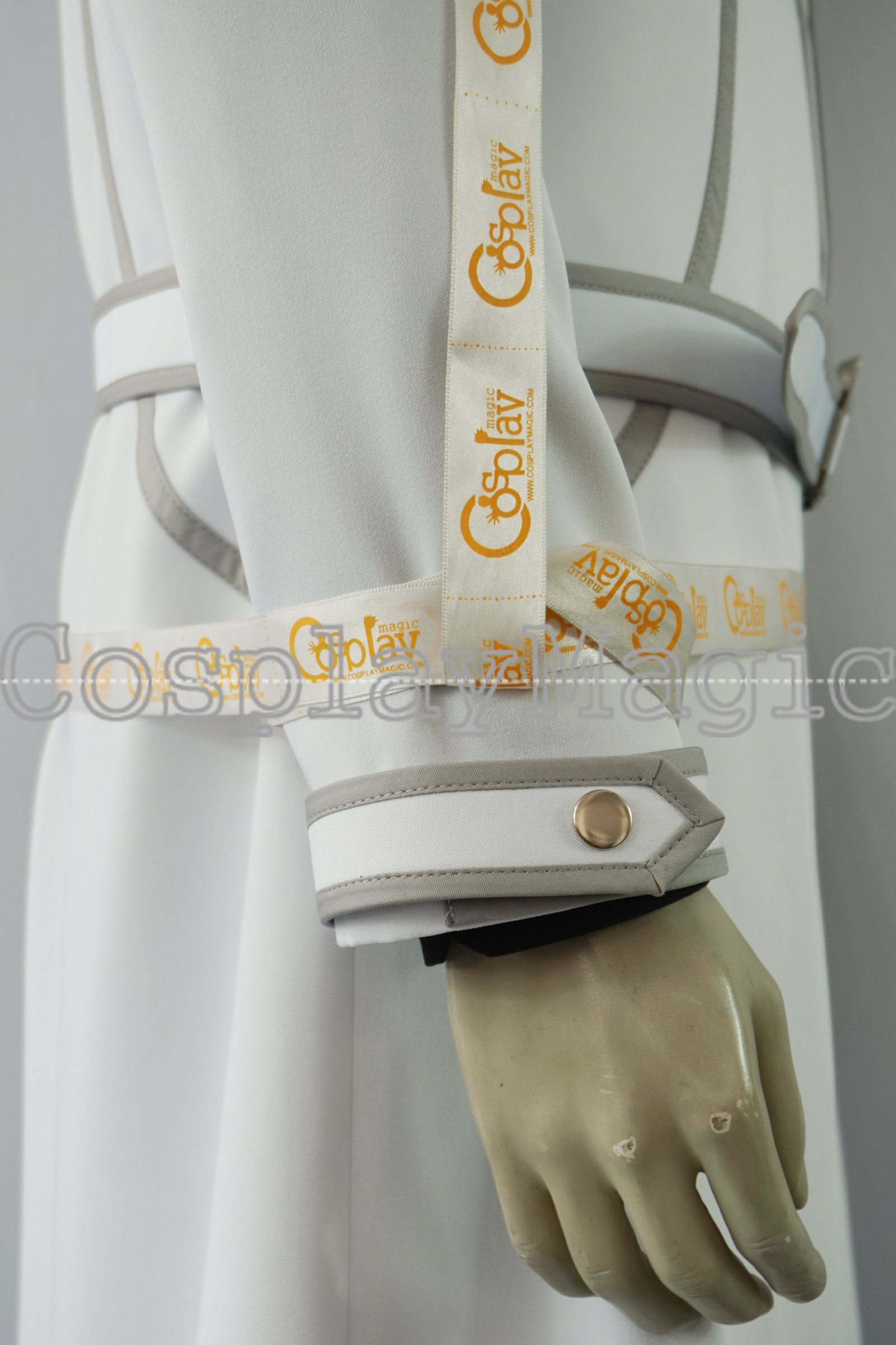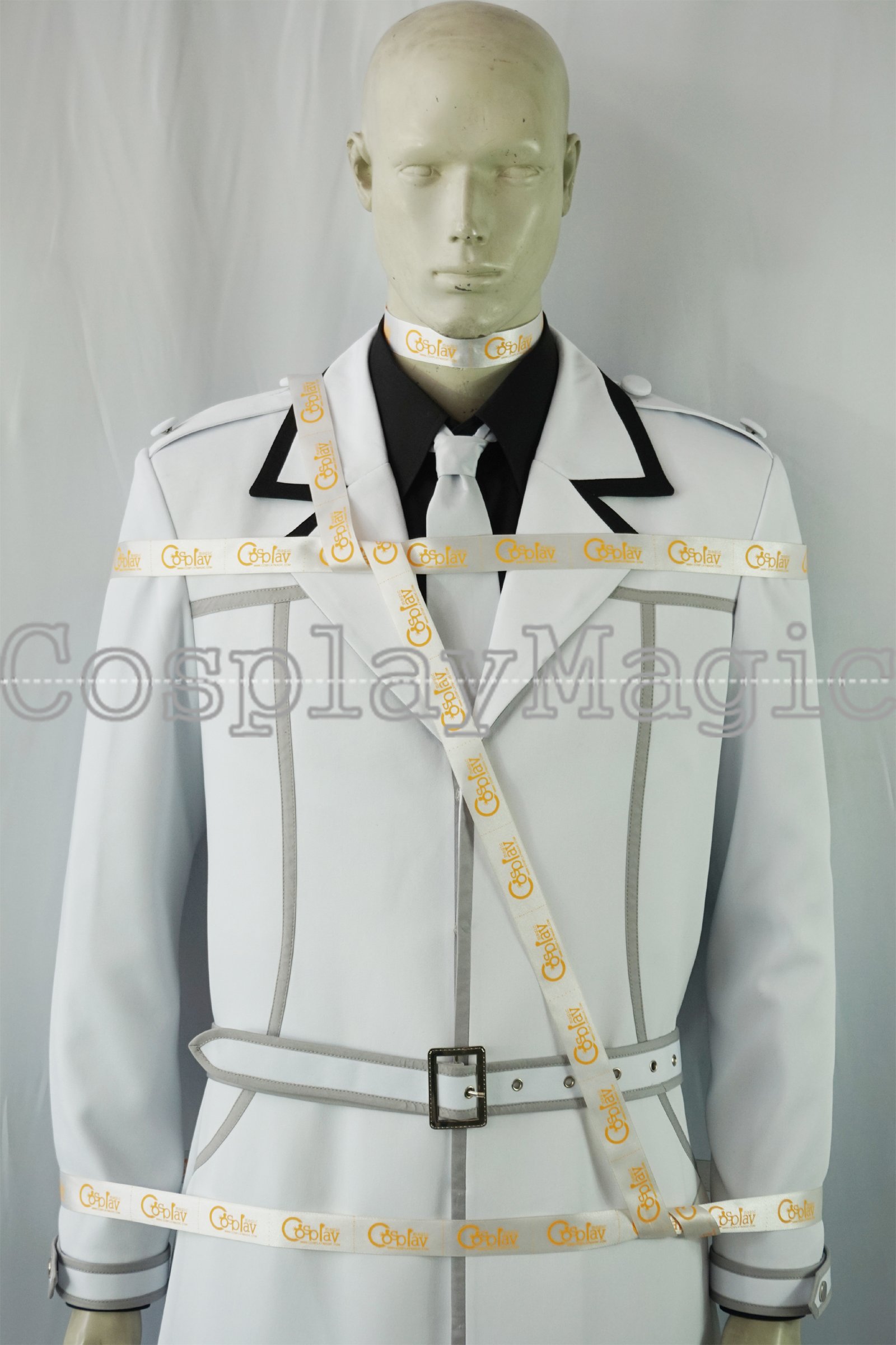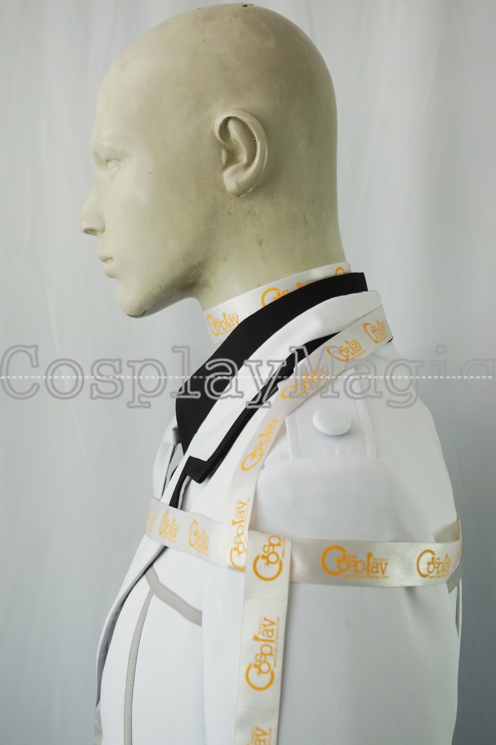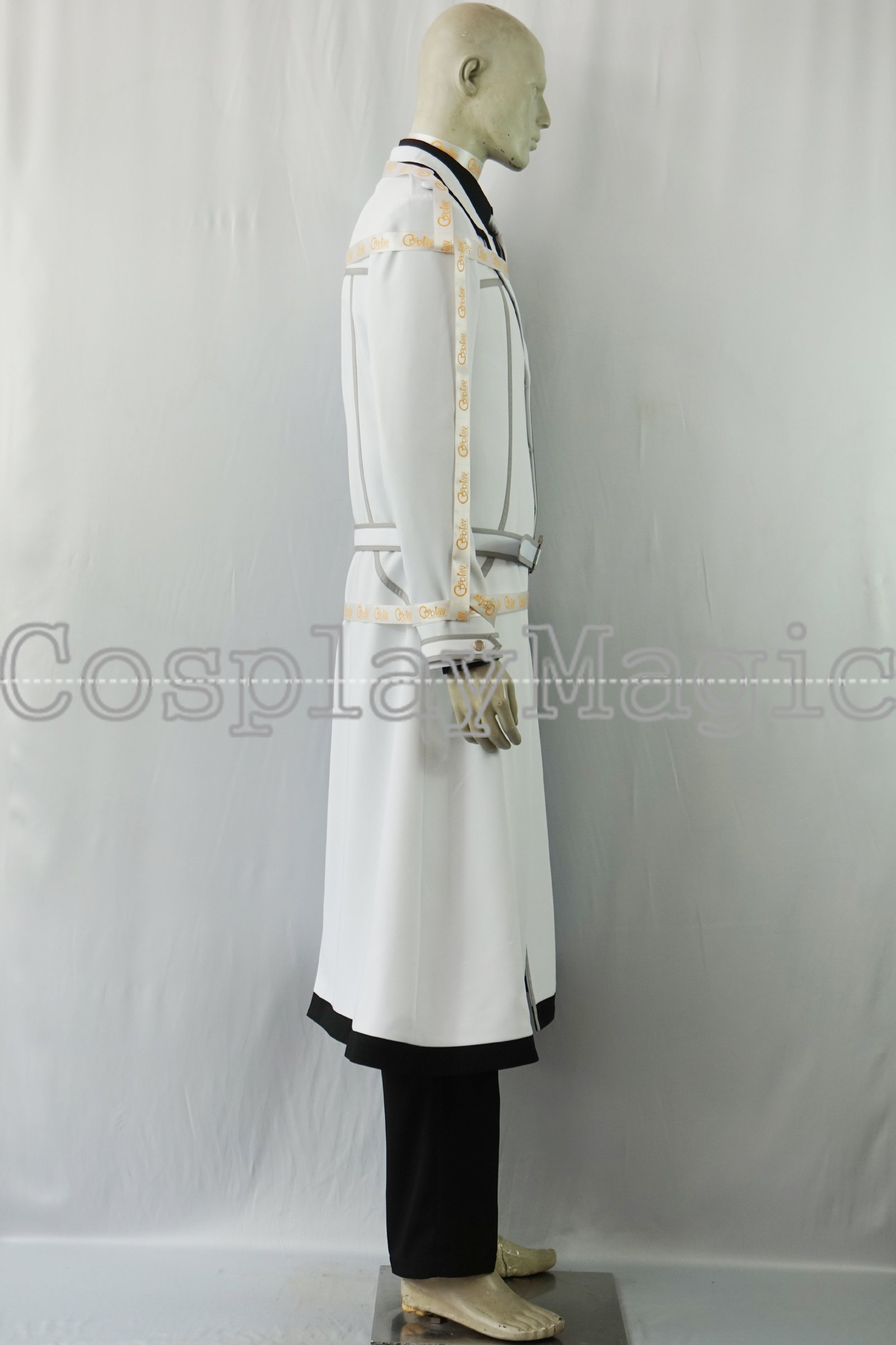 - White jacket with gray trims