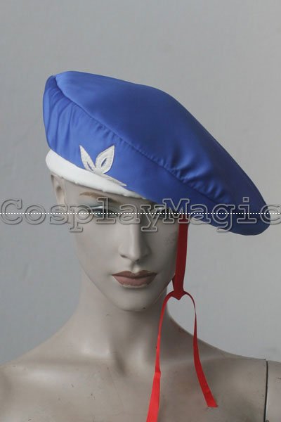 - Blue beret with white trimming and red ribbon