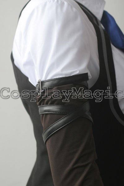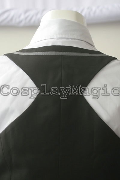 - Black vest with a large gap emphasizing the chest area, 3 yellow buttons in the front