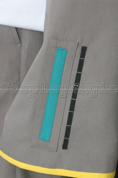 - Grey arm protectors and leg protectors with yellow edges