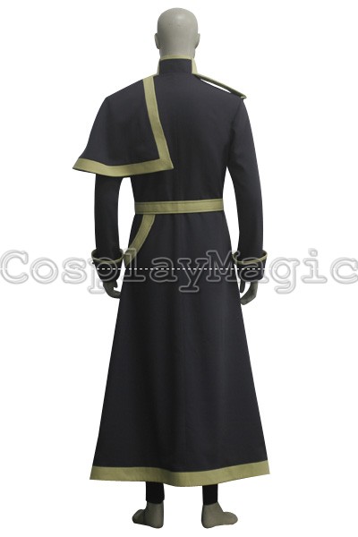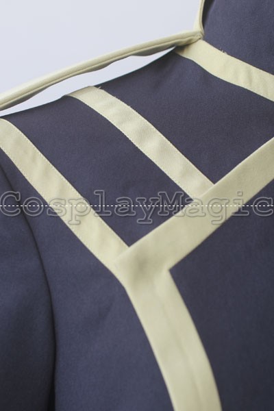 - Black ankle-length overcoat with yellow trimmings on the chest, sleeve cuffs and neck-guard, half mantle hanging off his left shoulder emblazoned with the Barsburg Military insignia