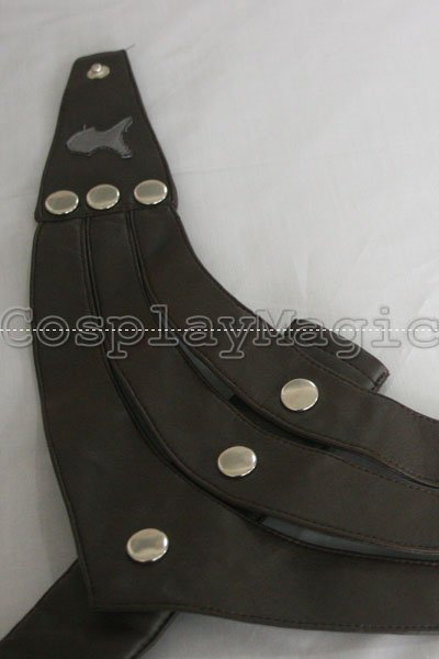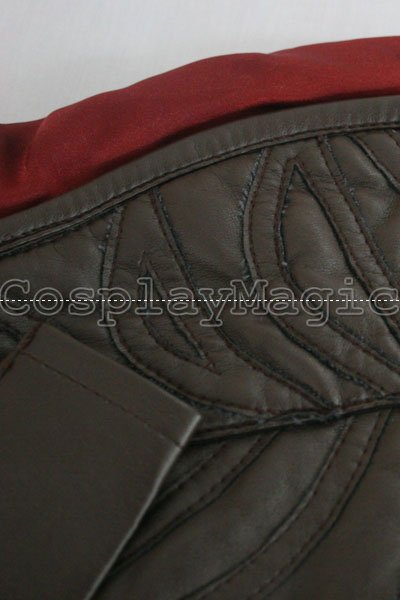- Red sash with faux leather sheaths