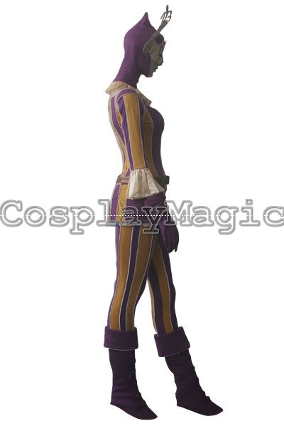 - Striped gold and purple jester costume