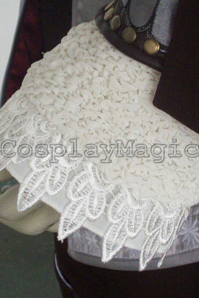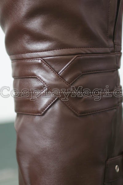 - Brown cape with red lining attached to the faux leather spaulder
