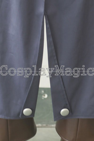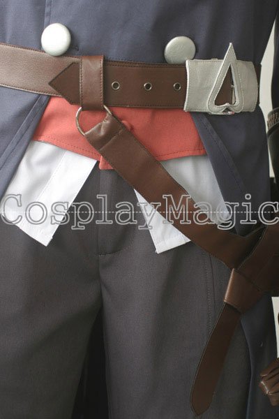 - Blue trench coat with red waistcoat underneath