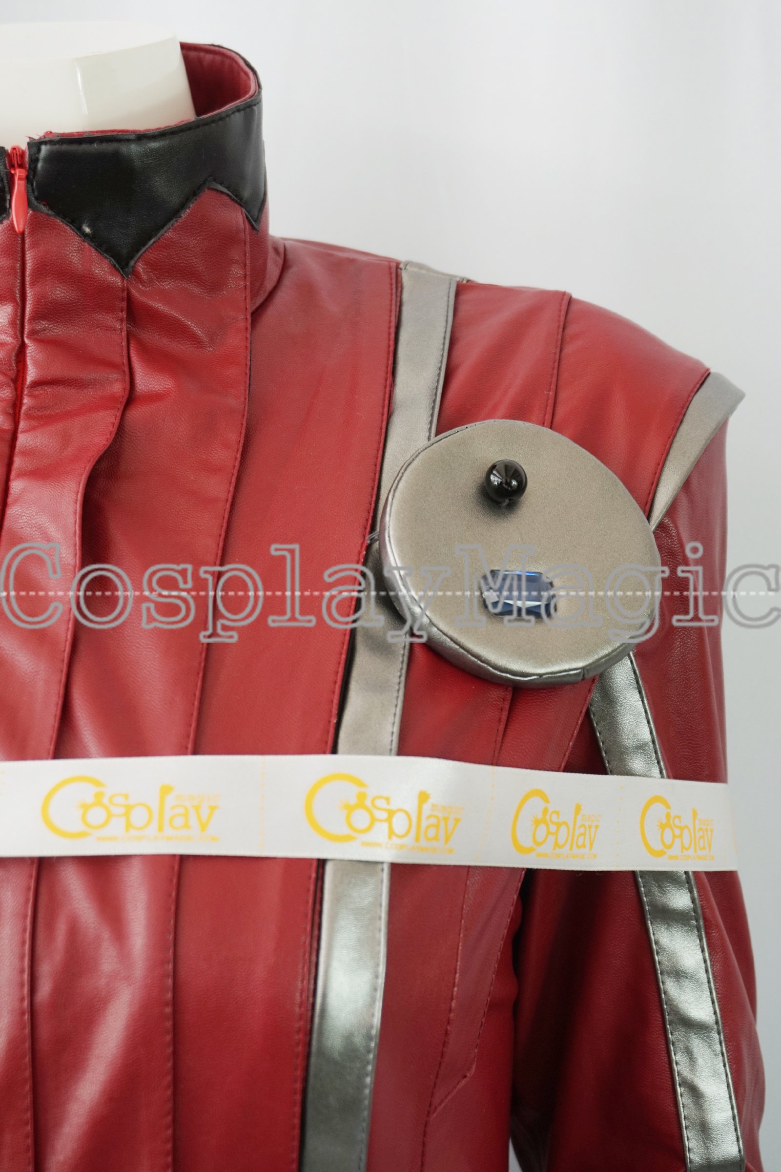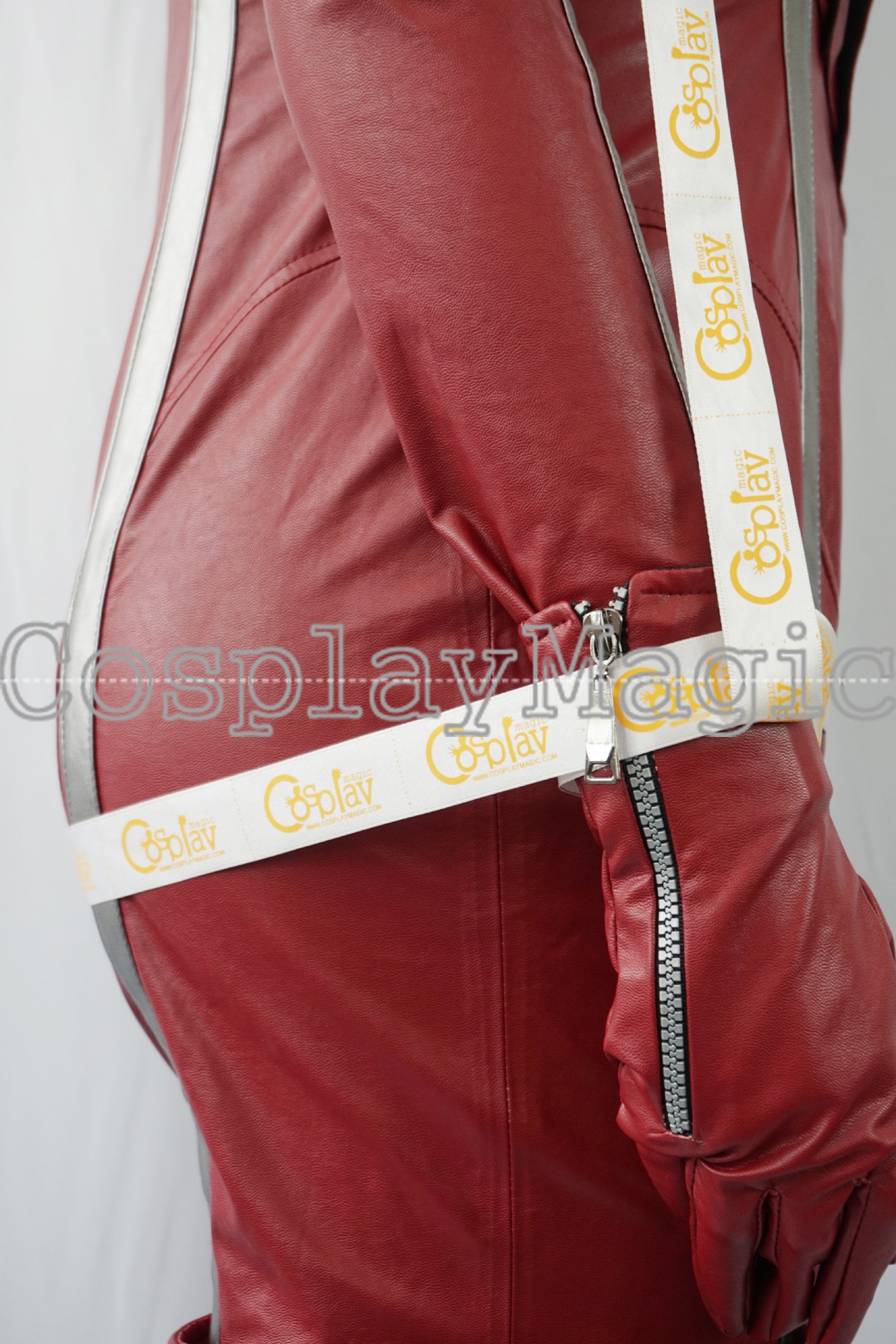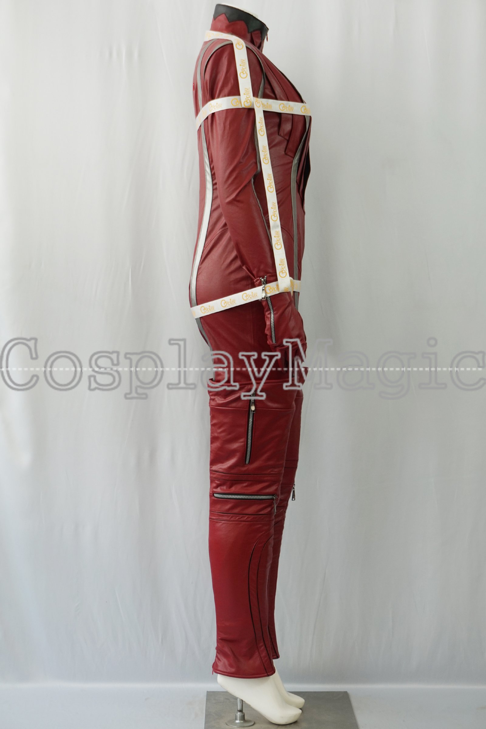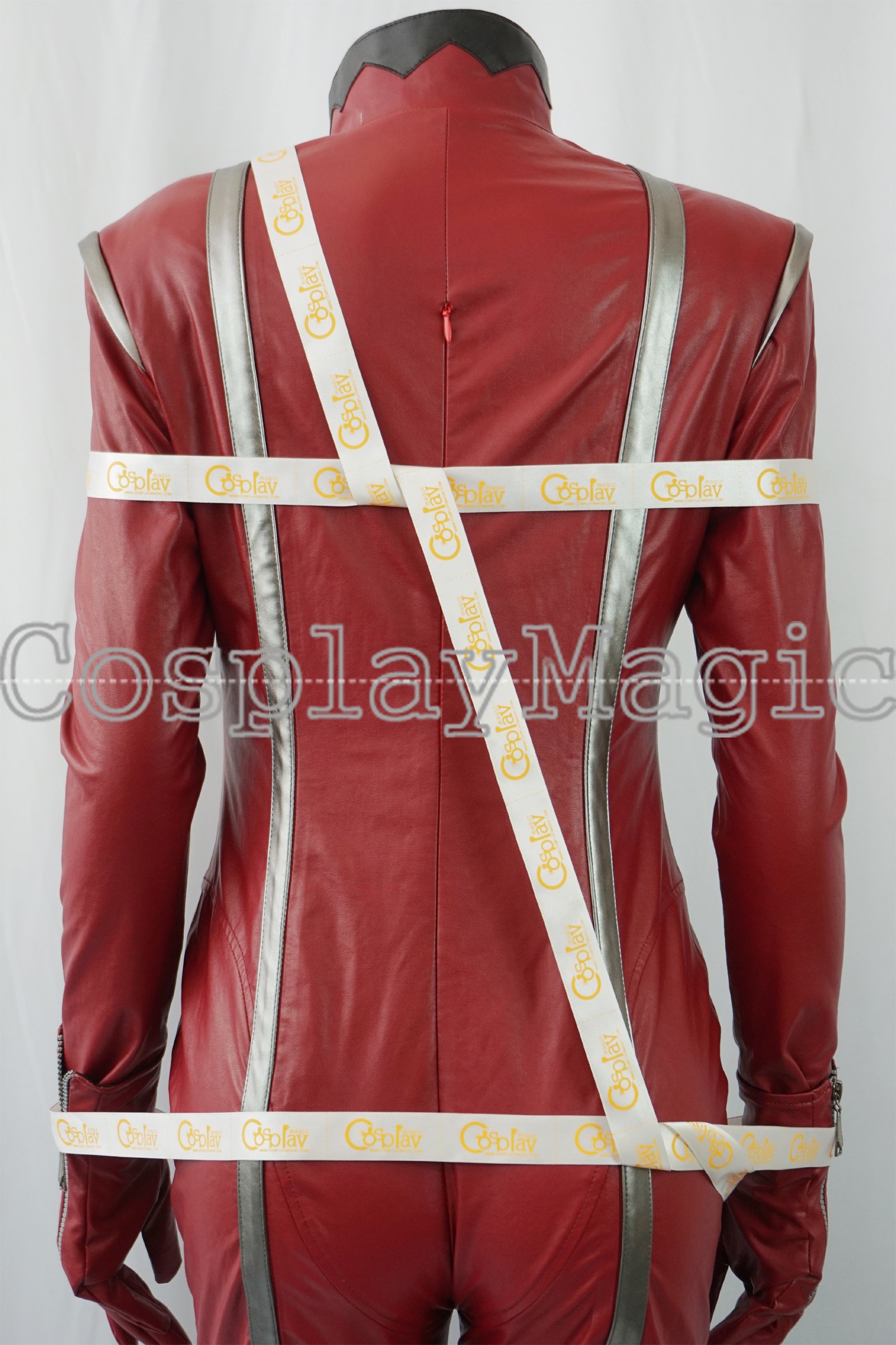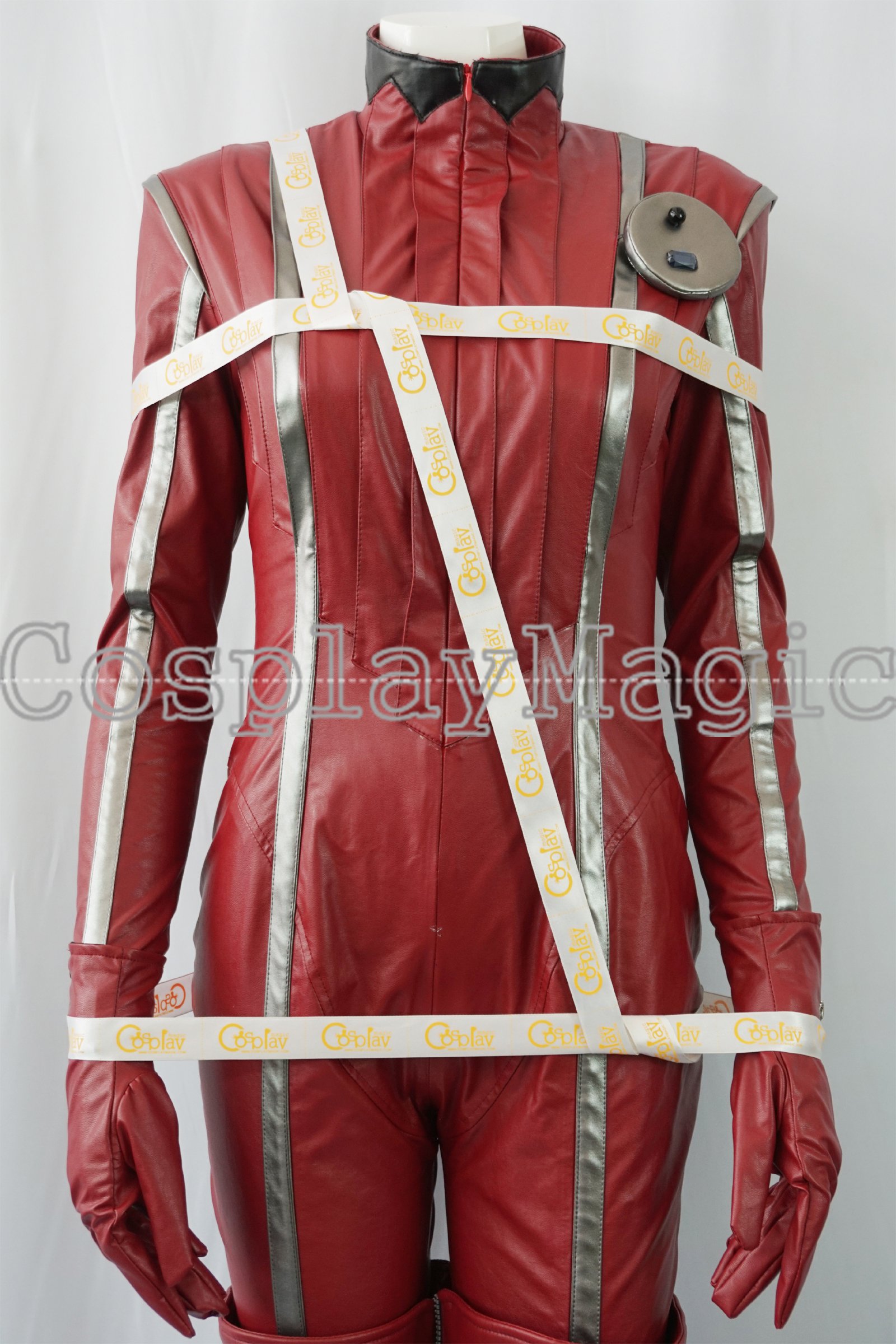 - Red faux leather jump-suit