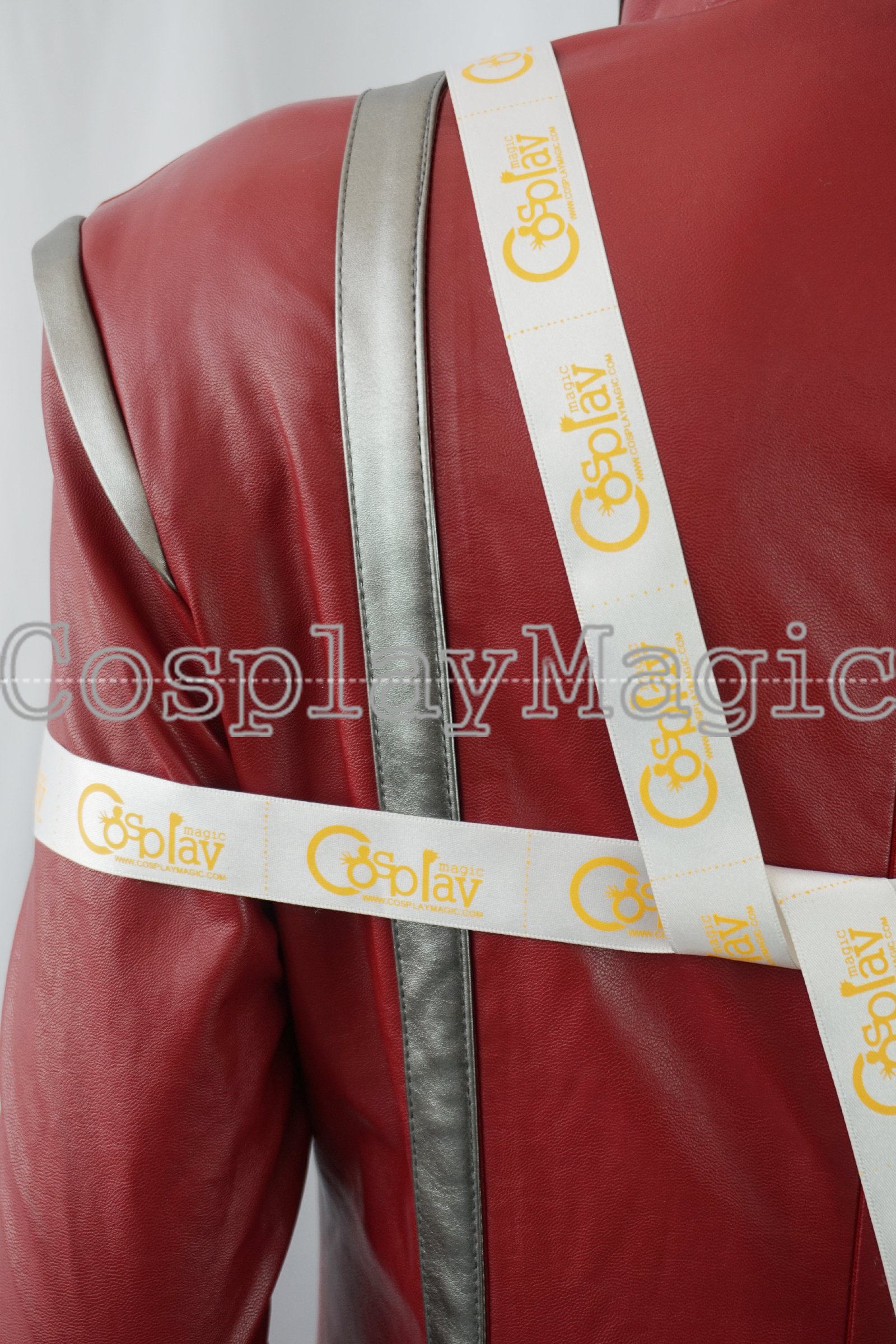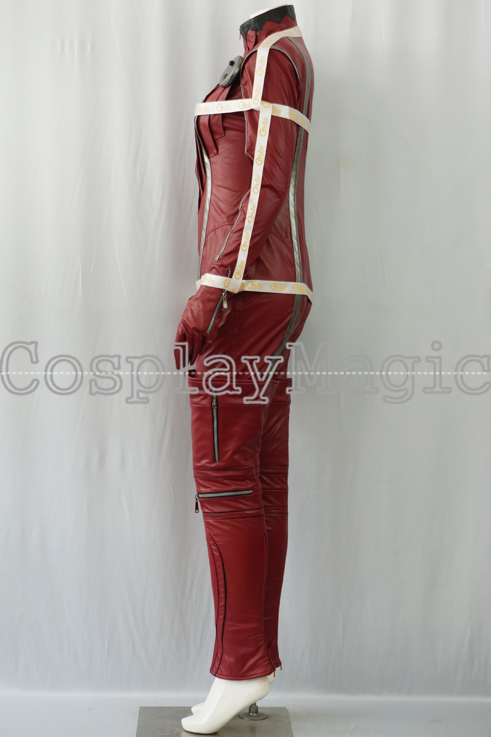 - Red faux leather leg protectors