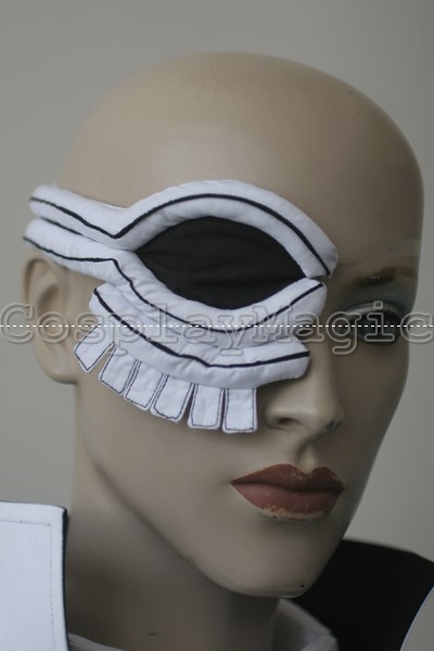 - White eye-shaped mask with teeth dotted along the bottom