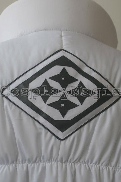 - White sleeveless puffer jacket that bears the Royal Guard emblem on the back