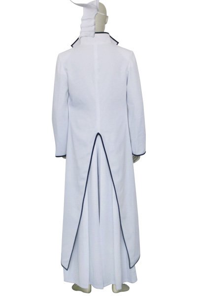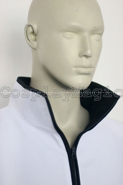 - White high-collared jacket with black lining