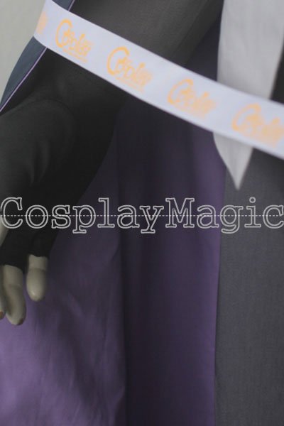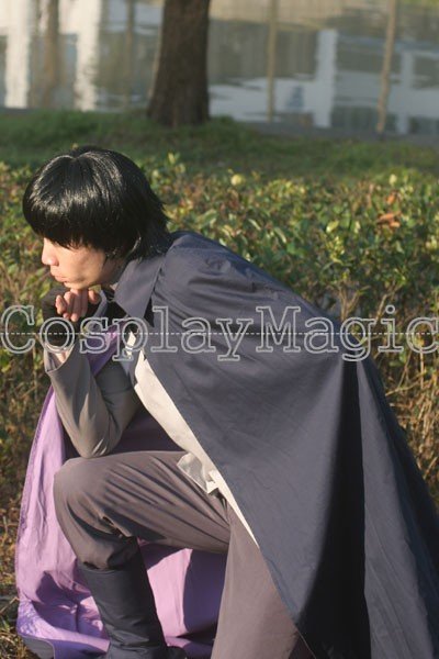 - Dark blue cloak with purple lining, front closure