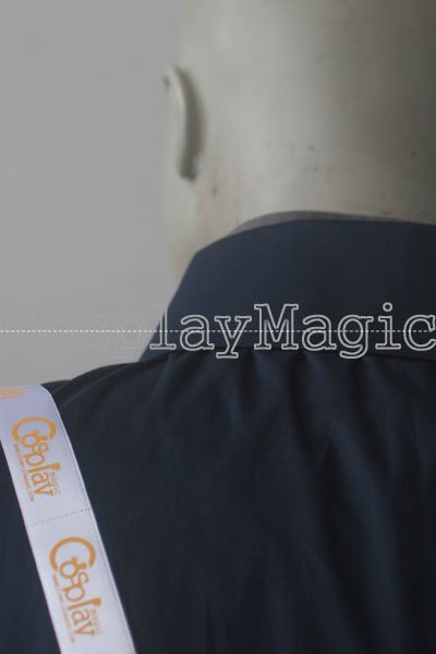- Dark gray trousers