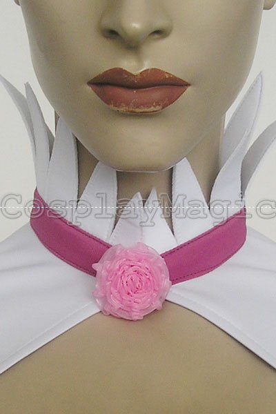 - White and pale purple dress with spiky collar and cuffs