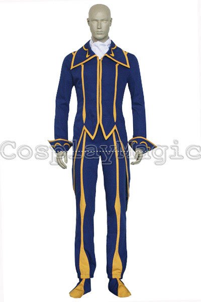 - Blue jacket with yellow edges and matched trousers