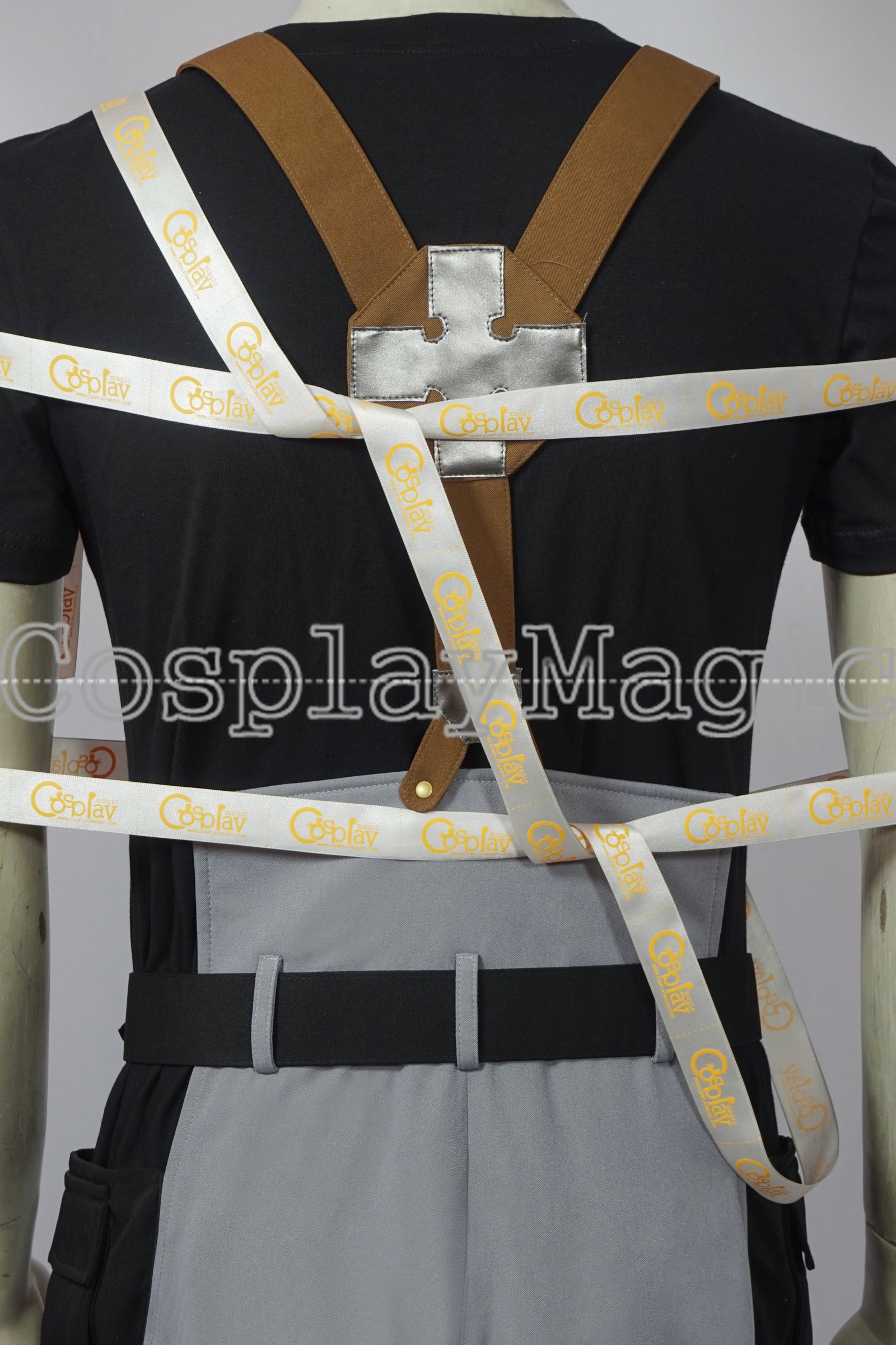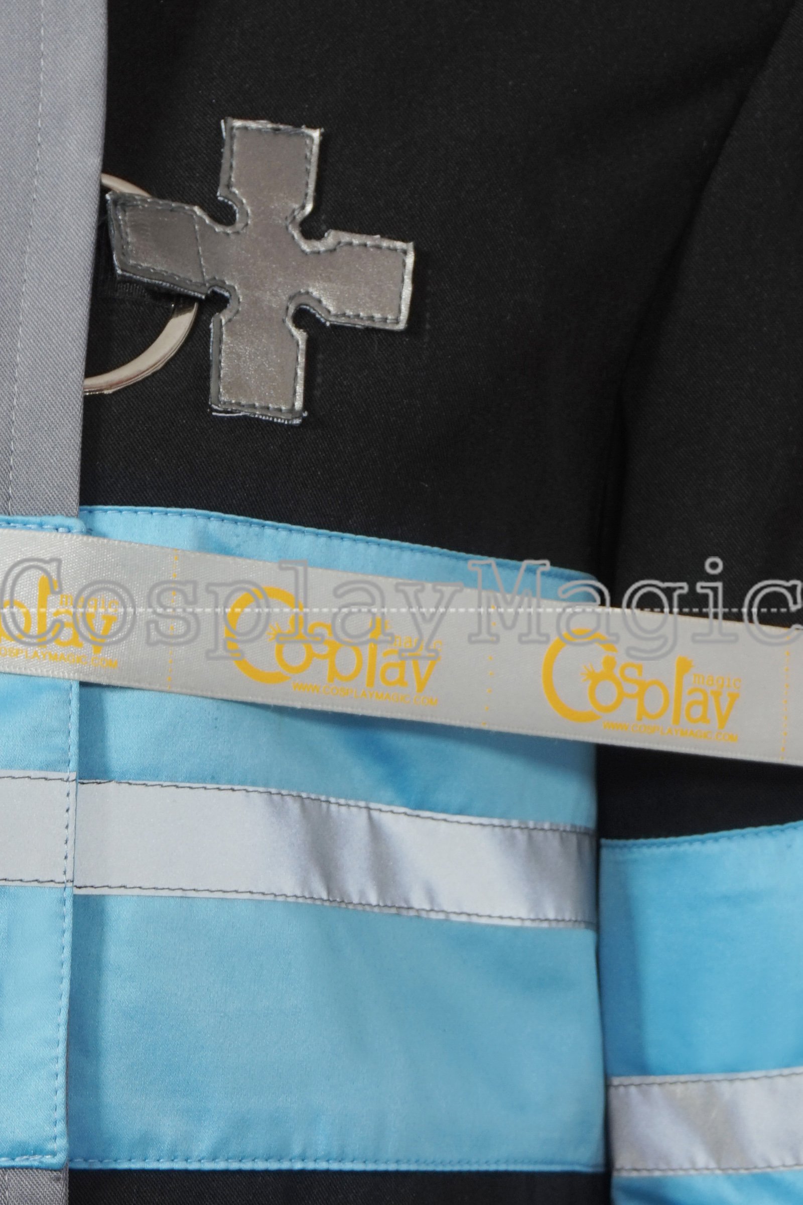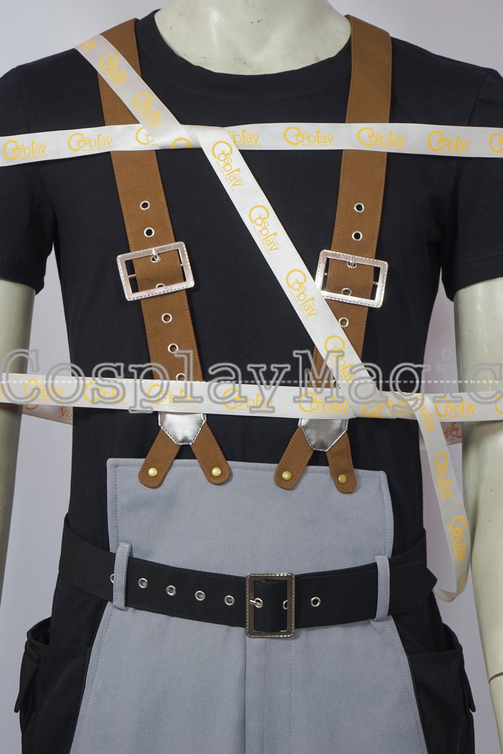 package include: black/gray coat, black undershirt, black/gray pants, belt, gloves, hat