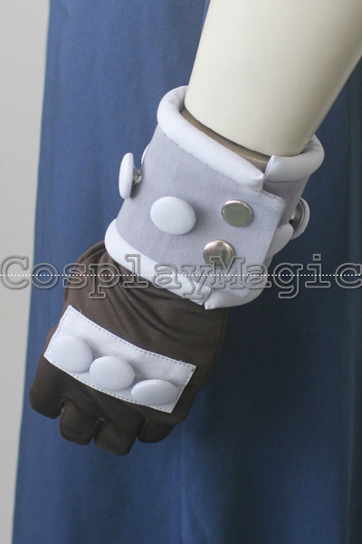 - Blue sleeveless tunic with studded edges, wing-like ornament attached on right shoulder