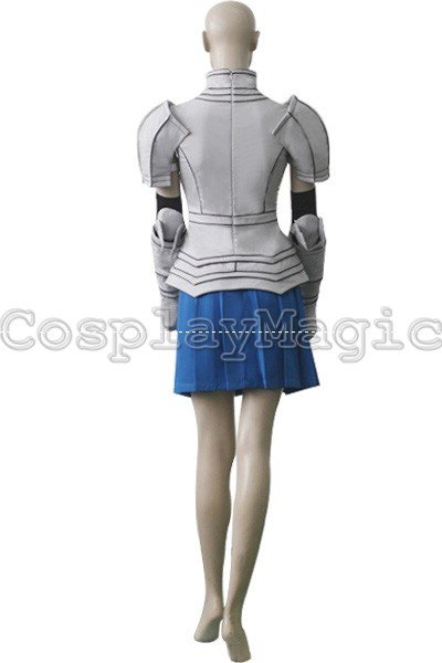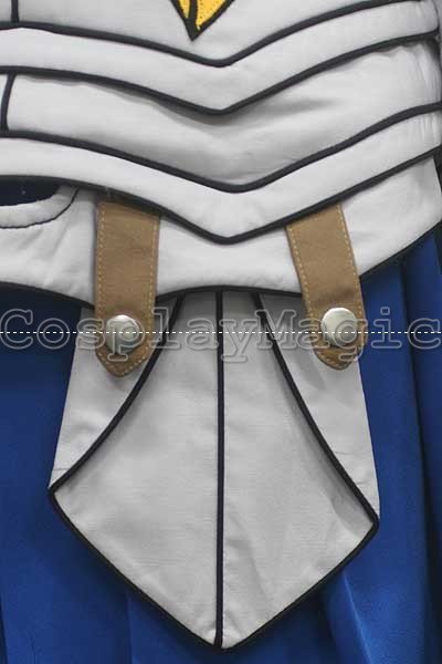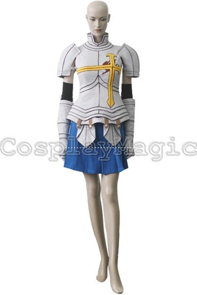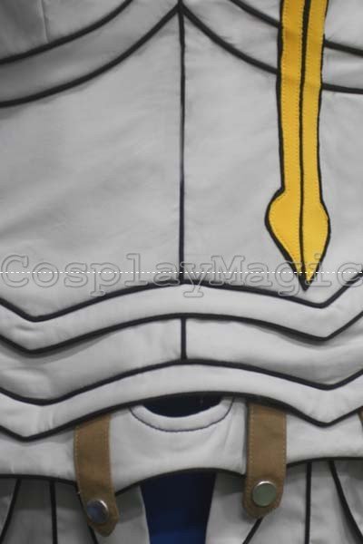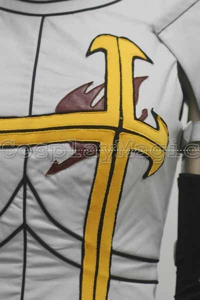 - Gray armor-like clothes with large yellow cross and Fairy Tails symbol in the front