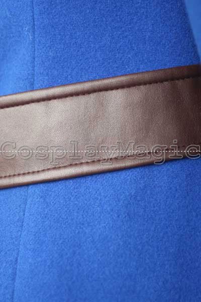 - Blue woolen coat with white faux fur cuffs
