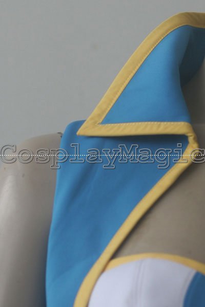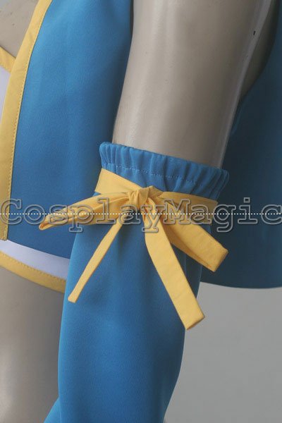 - Blue sleeves with yellow ribbons, white and blue frill cuffs