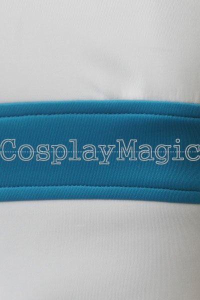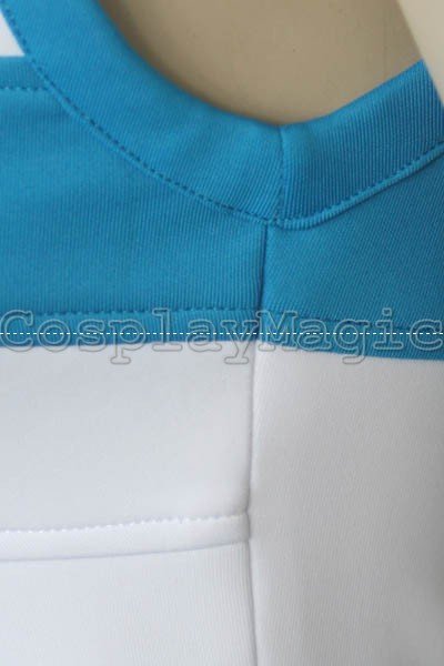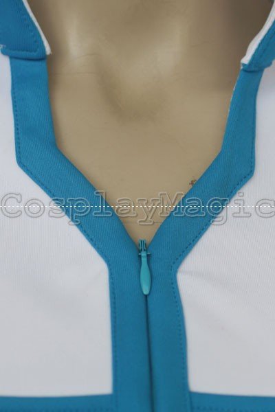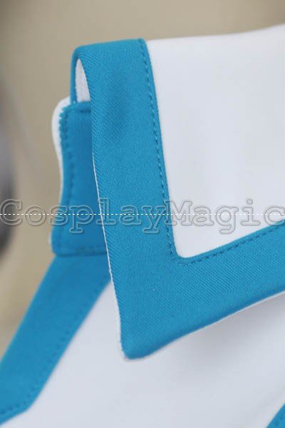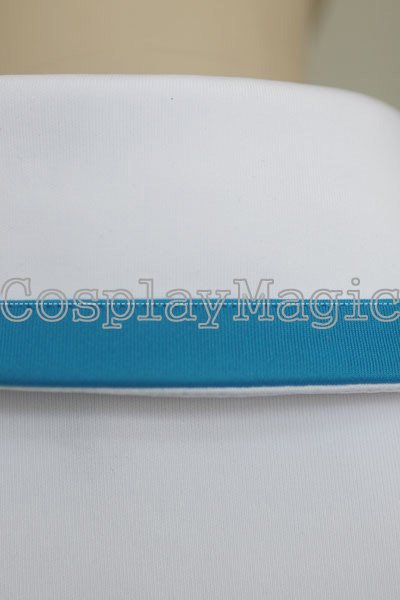 - White sleeveless high-collared top with blue edges