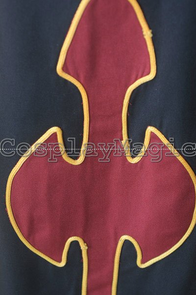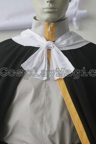 - Black clothes with golden edges, adorned by cross-shaped symbols