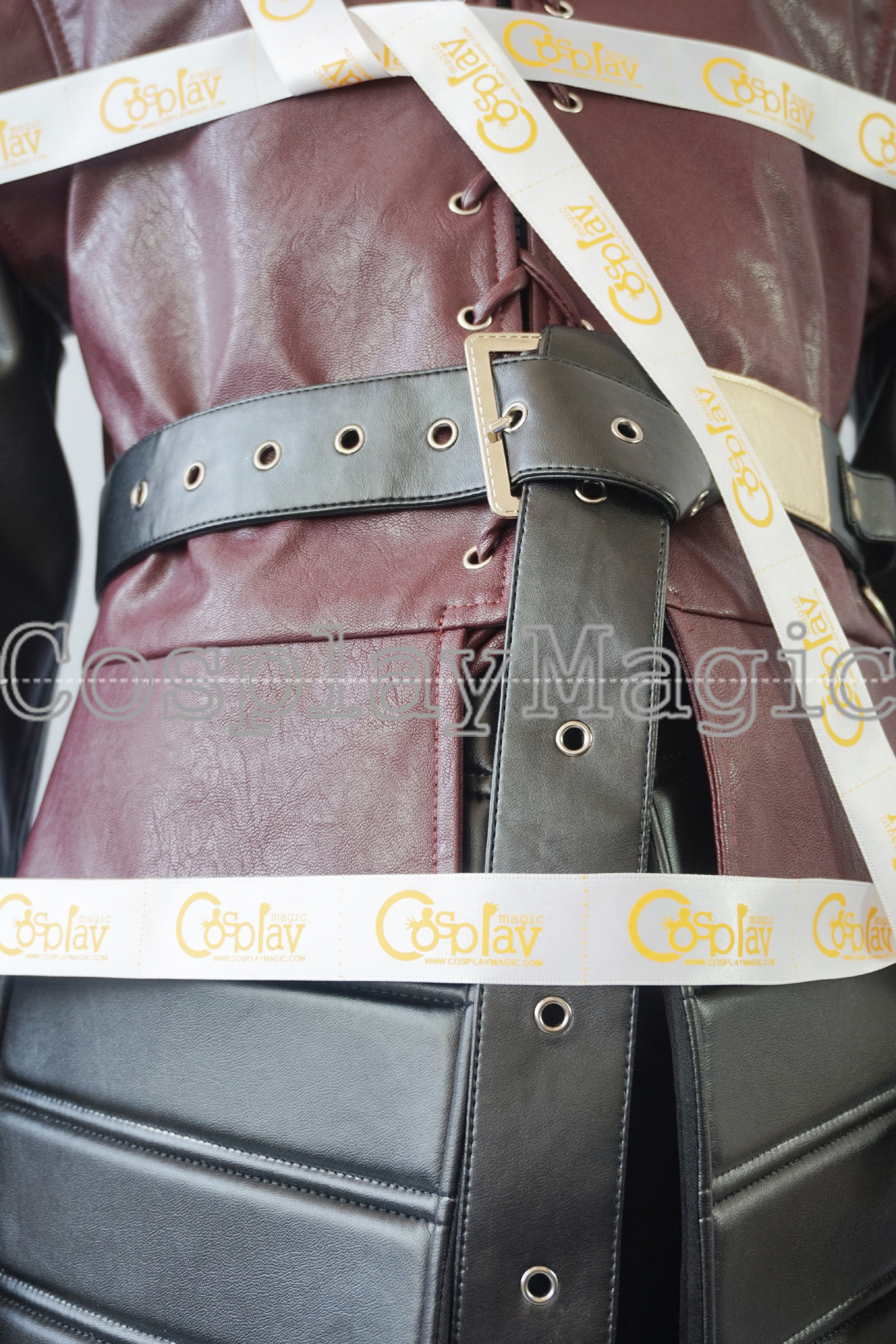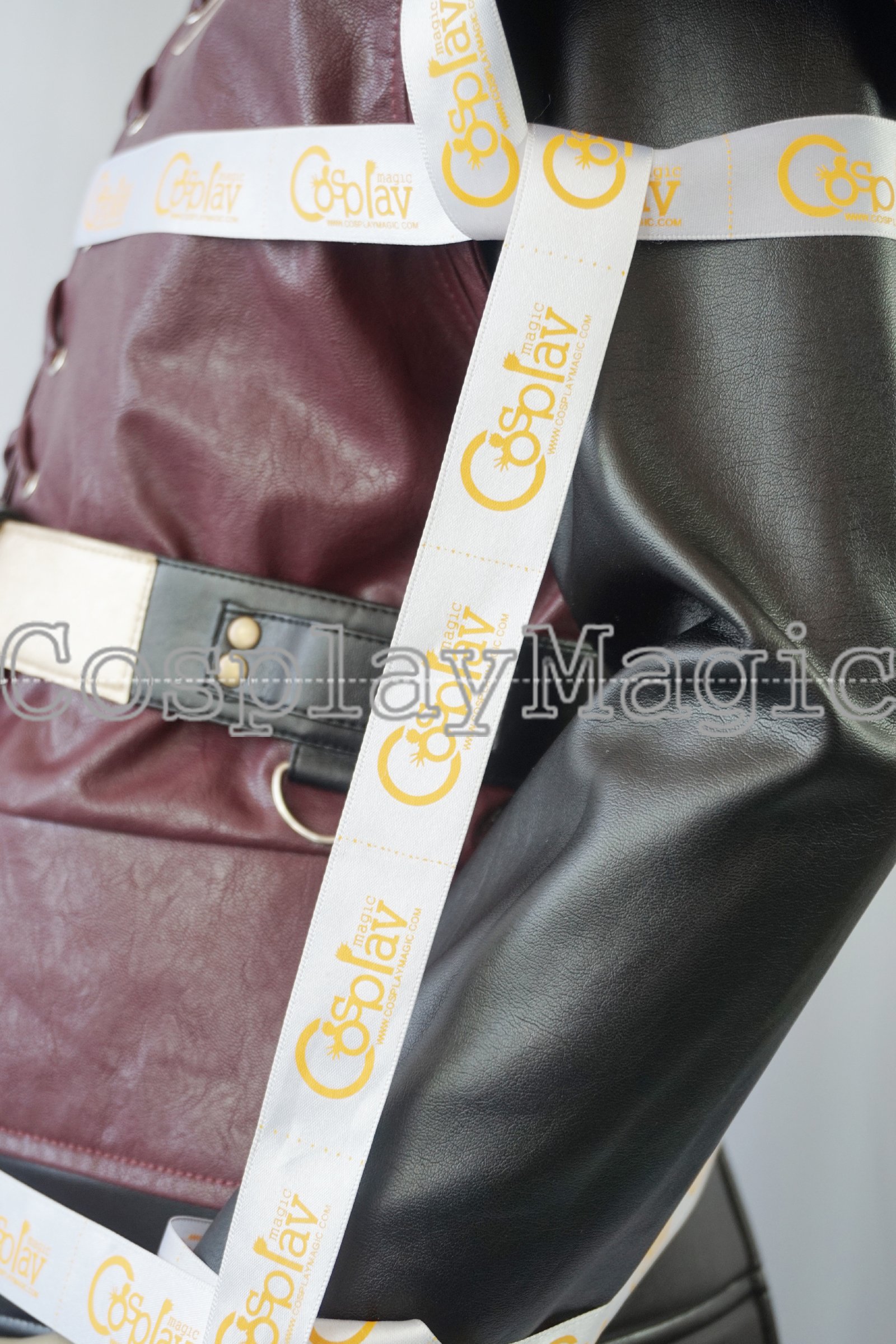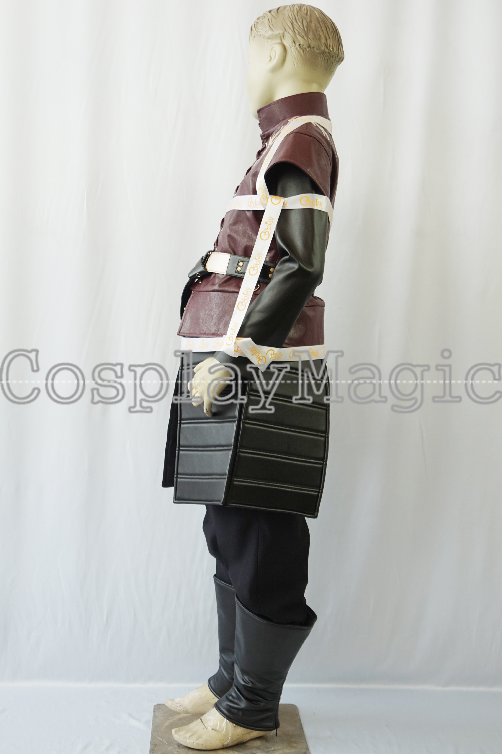 - Maroon faux leather short-sleeved jacket with The Hand of the King’s brooch