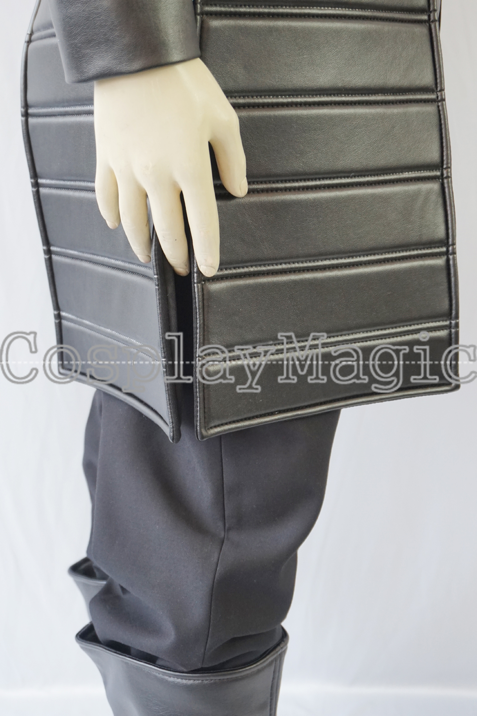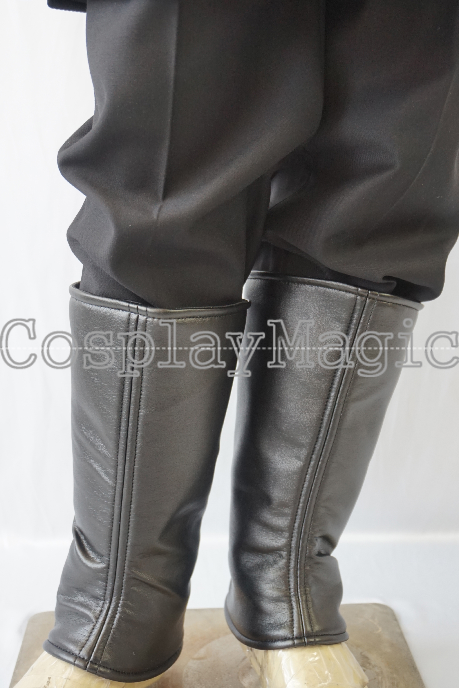 - Black trousers with black faux leather belt