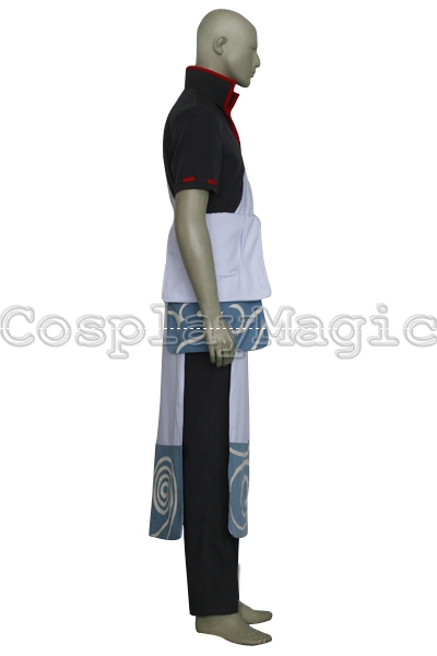 - White yukata with blue swirl pattern on the bottom and at the end of the sleeves