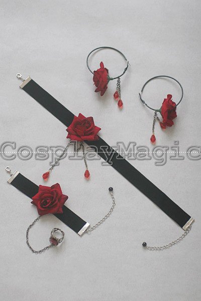 Gothic Lolita Rose Choker Cuff with Ring Earrings Set