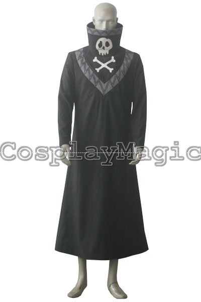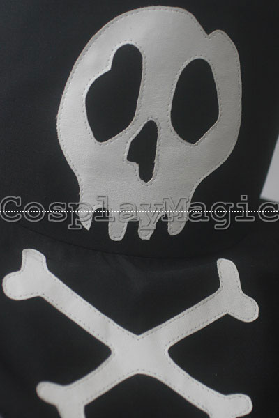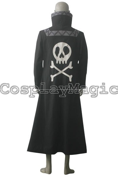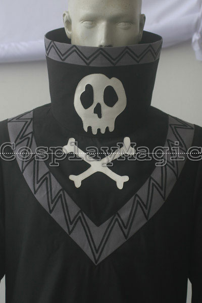 - Black high-collared coat with the trademark skull in the front and on the back