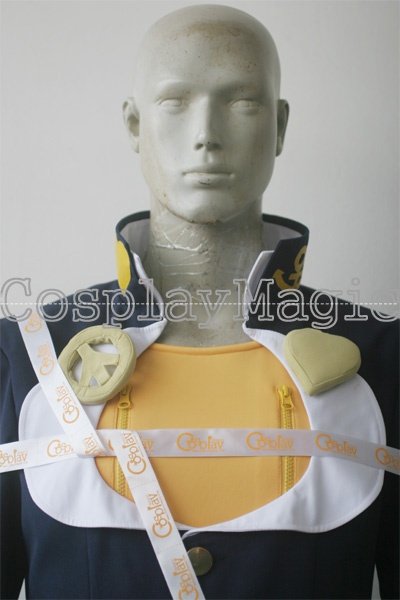 - Blue high-collared jacket